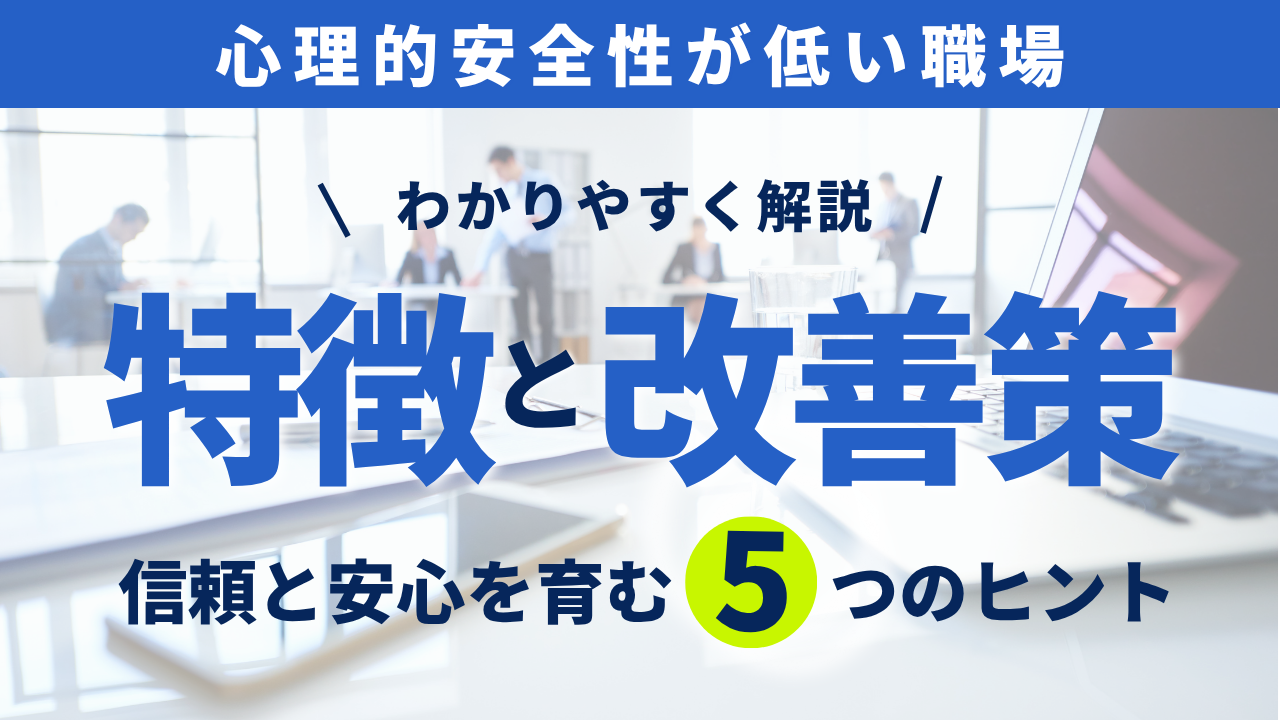 本記事では、心理的安全性が低い職場に共通する特徴とその原因を明らかにしながら、今日からできる改善策を具体的にご紹介します。安心して働ける職場をつくるヒントを、ぜひ見つけてください。