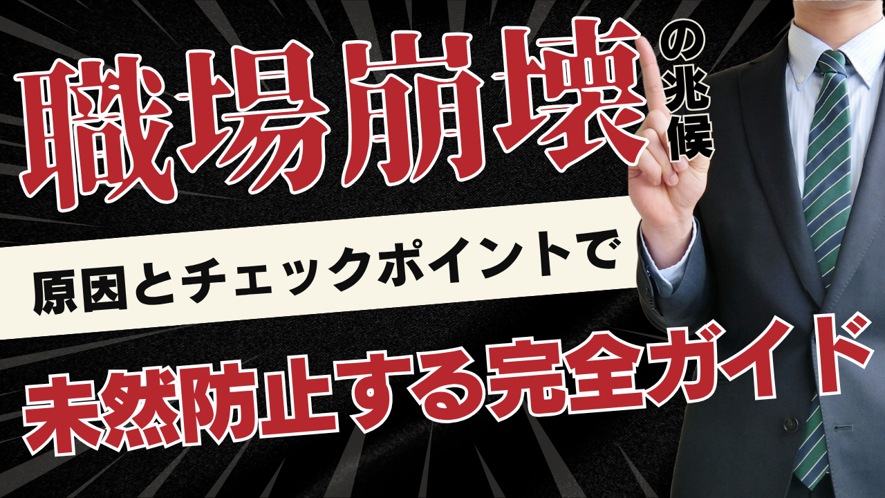 職場崩壊は、ゆるやかではあるが確実に進行するプロセスです。モヤモヤや違和感を放置せず、早めに兆候をキャッチできる組織体制が重要です。